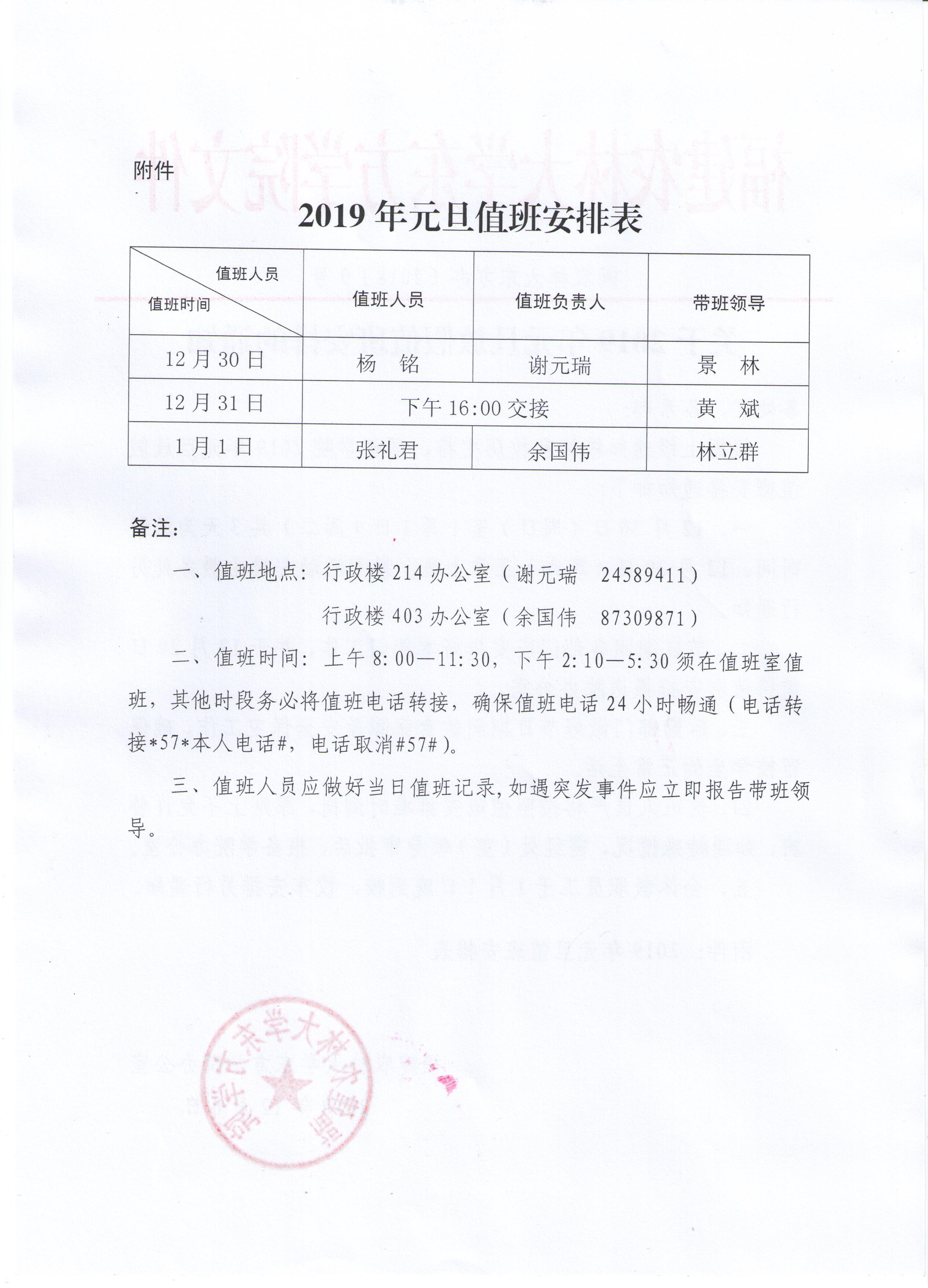 关于2019年元旦放假值班安排的通知