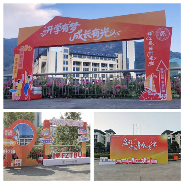 为扎实做好迎新服务保障工作,确保服务全面且细致,学校领导高度重视、周密部署,各职能部门与各学院用心筹备、用情服务,落实好每一项迎新准备事宜。随处可见的创意迎新展板和打卡背景板、色彩鲜亮的迎新帐篷…… 这些元素共同营造出热烈氛围,满含着全校师生对“新福工商人”的诚挚欢迎与美好期待。