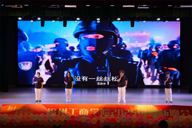 10月28日晚,福州工商学院“新光灿烂 逐梦新程”2025级迎新晚会在综合楼大礼堂璀璨上演。校领导景林、余新然、林立群、张利军、陈清义,永泰县公安局刑侦大队大队长张劲、葛岭所派出所所长林源与千余名师生齐聚一堂,以青春之名,共迎新征程,见证了一场融汇激情、创意与温情的视听盛宴。