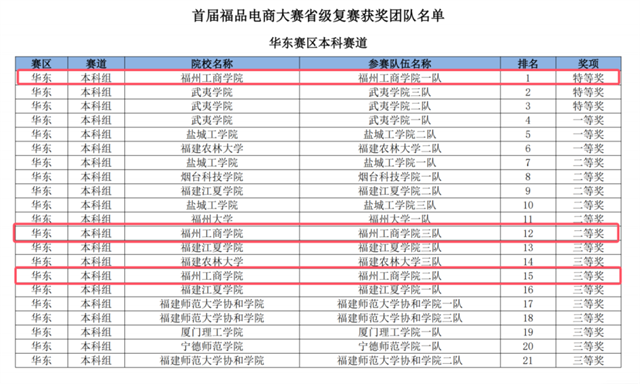 日前,首届福品电商大赛省级复赛(华东赛区本科赛道)圆满落幕。福州工商学院电子商务专业学子在激烈的竞争中脱颖而出,黄志峰、林振宇(指导老师:陈娥祥、陈剑伟)斩获特等奖,江嘉雯、余丽文(指导老师:陈娥祥、郑歆)荣获二等奖,叶向丽、黄嘉茹(指导老师:陈娥祥、郑歆)获得三等奖,三支获奖队伍全部晋级国家级总决赛。
