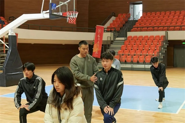 学子们跟着体育老师的节奏