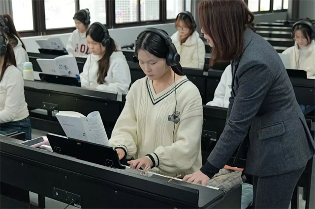 黑白琴键在学子指尖跳跃