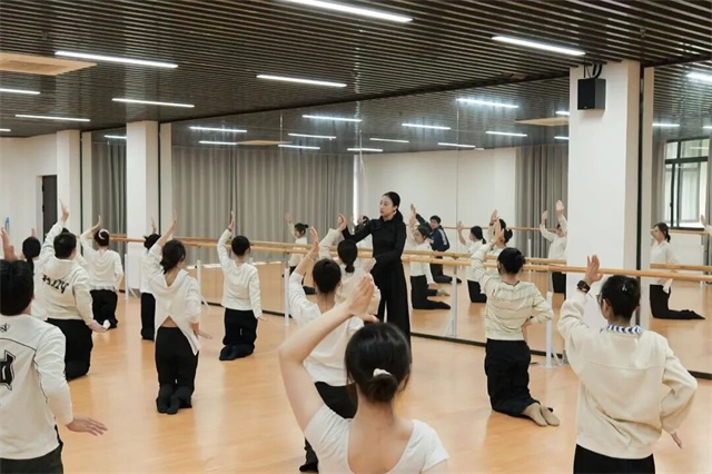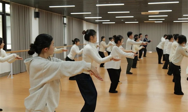 跟着老师拉伸、走位、排练动作