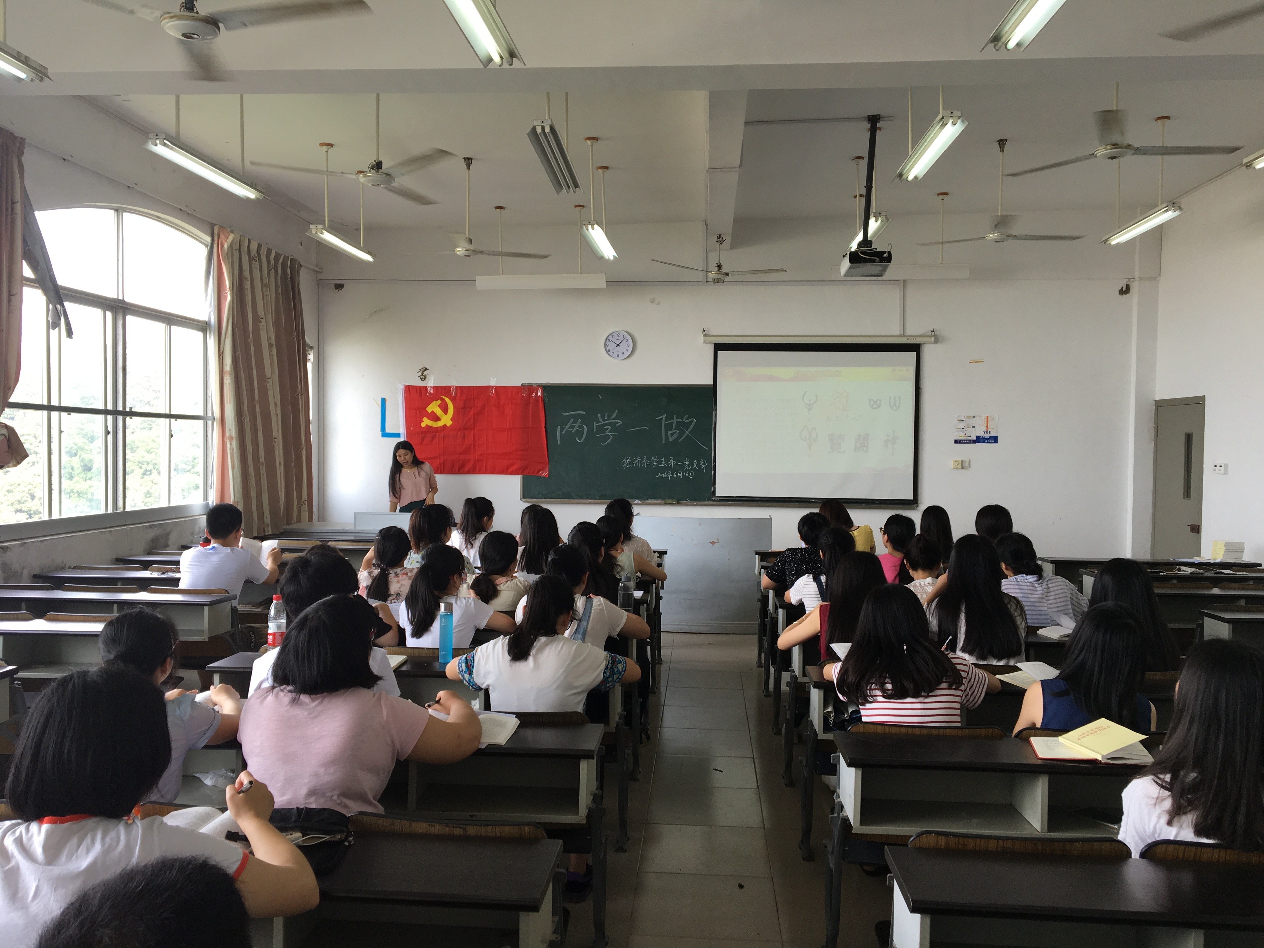 6月16日上午,为深入学习贯彻习近平总书记系列重要讲话精神,落实学院开展“两学一做”专题学习教育的方案,我院经济系学生第一、二党支部在博学楼503教室组织召开了“两学一做”专题教育讲座,主讲人分别是第一党支部书记陈沁蕊老师和第二党支部书记骆岩老师,经济系辅导员以及全体党员同志出席本次会议。