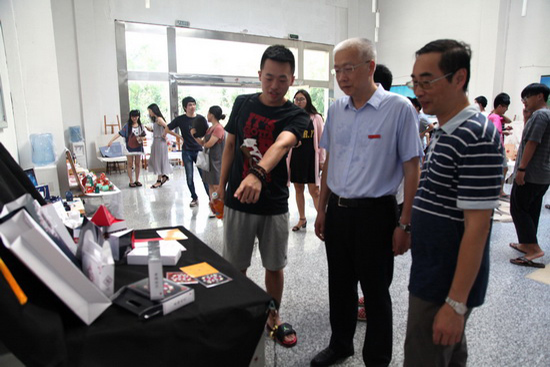 6月29日上午,由院人文艺术系13级视觉传达1班及15级专升本(艺术方向)1班共同组织的创意产品包装设计作品展在我院博创楼大厅举行,景林院长、黄斌专职副书记莅临现场观摩,并与学生交流作品设计理念。