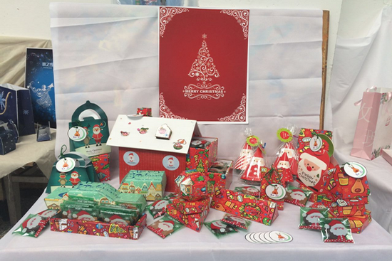 【说明】品牌设计以圣诞包装为主题的,以红色、白色等鲜艳的颜色为主色调,给人一种活泼可爱的风格。盒形简单大方,多种多样,可以满足不同人的喜好。突出的圣诞图案可以吸引顾客,增加购买欲望。包装是用200克白色铜版纸和灰卡纸裁剪拼贴而成,有一定的稳定性,可以承受饼干的重量,有一定的体积感。可以更好的防潮,防霉,防蛀,保护饼干防止破碎。包装的形状是以圣诞树、小车、圣诞小屋为主打盒形。圣诞小屋内置两层夹层,方便存放饼干,抽拉的形式拿取的时候也更方便。里面的饼干有独立的包装,更好储存不会影响其他口感。同时我们的包装还有加入手提,方便携带。